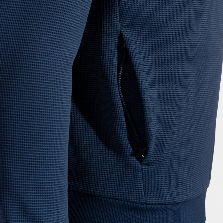 Posiada wstrzyknięty zamek błyskawiczny z ochroną podbródka przed otarciami. Ma również kaptur oraz ściągacze na mankietach i dole, zapewniające bardziej komfortowe dopasowanie. Wyposażona w dwa przednie kieszenie z zamkami błyskawicznymi, w których można bezpiecznie przechowywać drobne przedmioty.